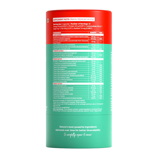 Total Beauty Formula: WELLBEING Hair Skin & Nails (60 Capsules)Nourish your inner beauty with WELLBEING's all-in-one Hair, Skin, & Nails formula. This bottle contains 60 vegetarian capsules, meticulously blended with Biotin, Collagen peptides, antioxidants, and vital...Sale price Rs. 1,199.20Regular price Rs. 1,499.00 -