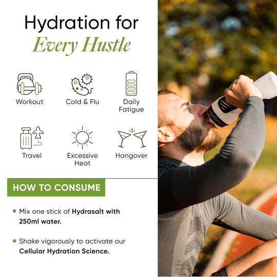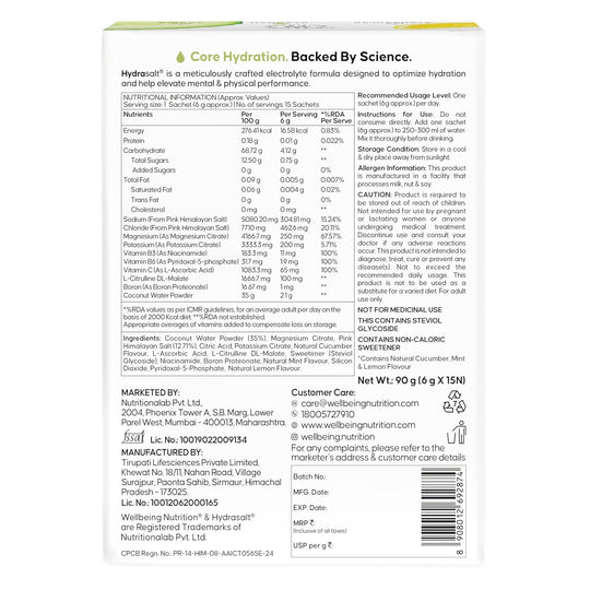 Electrolyte Hydration Mix: Cucumber Lemonade Hydra Salt (90g)Replenish, rehydrate, and re-energize with WELLBEING Hydra Salt. This expertly balanced electrolyte mix contains essential salts, minerals, and vitamins to restore optimal hydration levels lost through sweat and activity....Sale price Rs. 679.20Regular price Rs. 849.00 -