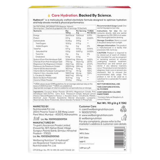 Advanced Electrolyte Mix: Raspberry Lemon Hydra Salt (90g)Maximize your performance and speed up recovery with WELLBEING Hydra Salt. This 90g hydration formula is scientifically designed to quickly replace lost fluids and minerals. The tangy, sweet flavor...Sale price Rs. 679.20Regular price Rs. 849.00 -