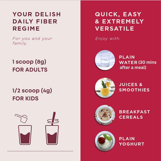 Key Features:Premium blend of soluble and insoluble fibers. Refreshing Vanilla Berry flavor. 240g size for daily use. Usage:Mix one serving with water or your favorite beverage daily. Benefits:Maintains a healthy digestive tract, helps control blood sugar...Sale price Rs. 799.20Regular price Rs. 999.00 -