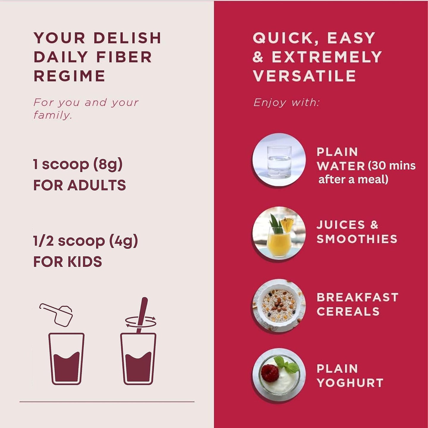 Key Features:Premium blend of soluble and insoluble fibers. Refreshing Vanilla Berry flavor. 240g size for daily use. Usage:Mix one serving with water or your favorite beverage daily. Benefits:Maintains a healthy digestive tract, helps control blood sugar spikes, and supports overall gut flora balance. A delicious way to meet your fiber needs.