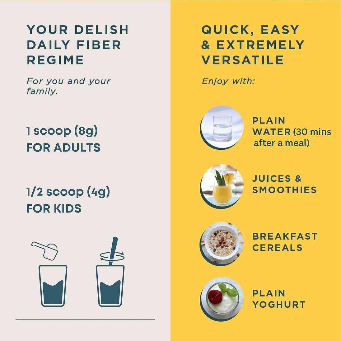 Key Features:High-quality dietary fiber blend. Delicious, easy-to-mix Pina Colada flavor. 240g container. Usage: Mix one scoop with water and drink immediately, once daily. Benefits:Promotes regular bowel movements, supports a healthy colon, aids in weight management by promoting satiety, and helps maintain healthy cholesterol levels.
